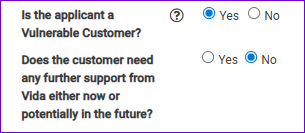 If you have a customer that you've identified as vulnerable and they are happy to disclose the vulnerability to us, please ensure you make us aware within the application. The option shown will be presented at the start of the process and should be ticked to Yes.